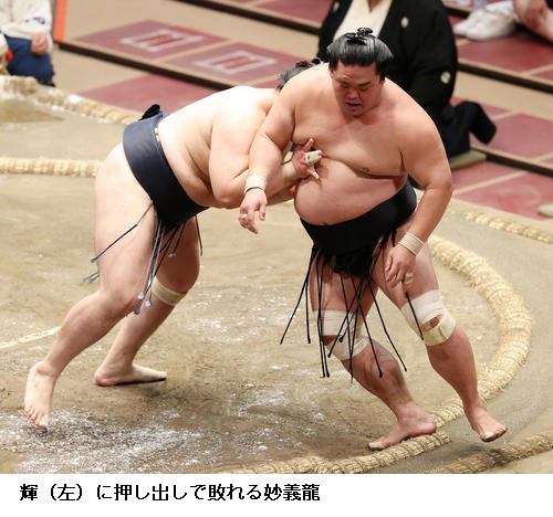 ▽妙義龍に輝は、輝が押し出し。妙義龍は3敗目を喫しました。