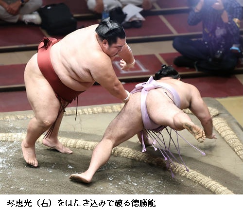 ▽琴恵光に徳勝龍は徳勝龍がはたき込み。