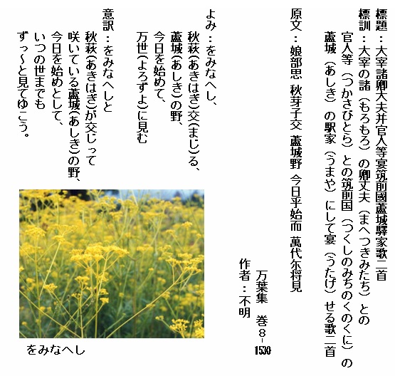 巻3-0455:かくのみにありけるものを萩の花咲きてありやと問ひし君はも