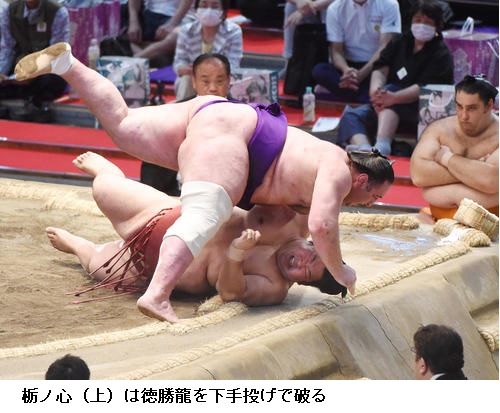 ▽栃ノ心に徳勝龍は、栃ノ心が下手投げ。徳勝龍は負け越しです。
