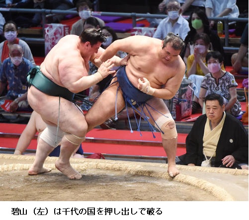 ▽碧山に千代ノ皇は、千代ノ皇が押し出し。碧山は負け越しです。