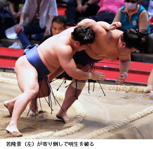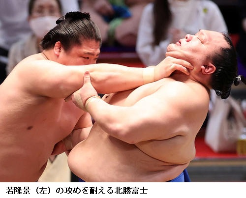 ▽新小結 若隆景に北勝富士は北勝富士が突き落とし。