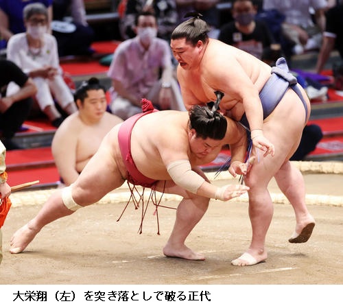 大関 正代も2連勝し「きのう、きょうと一歩目の出足はよく踏み込めて体重もかけられているのではないか。体がよく動いてくれてるし、反応もよかったので、いいスタートだと思う」と手応えを口にしました。 (NHK WEB NEWS 2021年7月5日 19時08分)