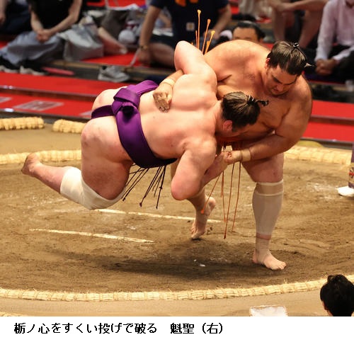 ☆魁聖 立ち合いから右四つになれて良かった。久しぶりに自分の形で相撲が取れました。