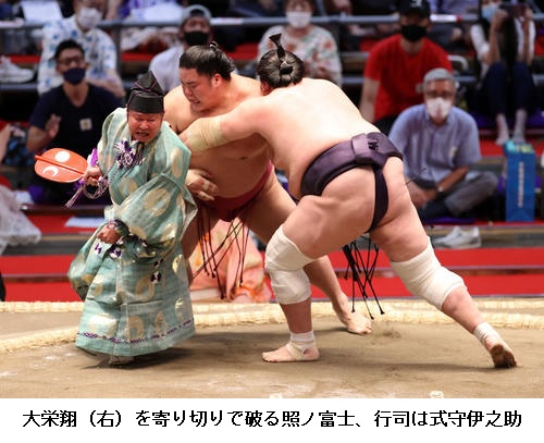 照ノ富士は10連勝し「冷静にできたかなと思う。まだ5日間あるので、これからです。自分のやってきたことを信じてやるだけ」と話していました。 (NHK WEB NEWS 2021年7月13日 23時03分)