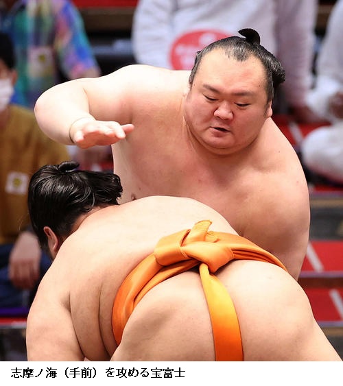 ▽剣翔に宝富士は、宝富士が寄り切り。