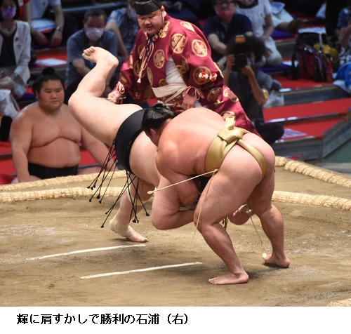 勝ち越しまであと1勝とした石浦は「立ち合いで前みつのいいところが取れて自分のいい攻めができた。特に気負うこともない。体の状態がいいと気持ちも自然と乗ってくる」と話していました。