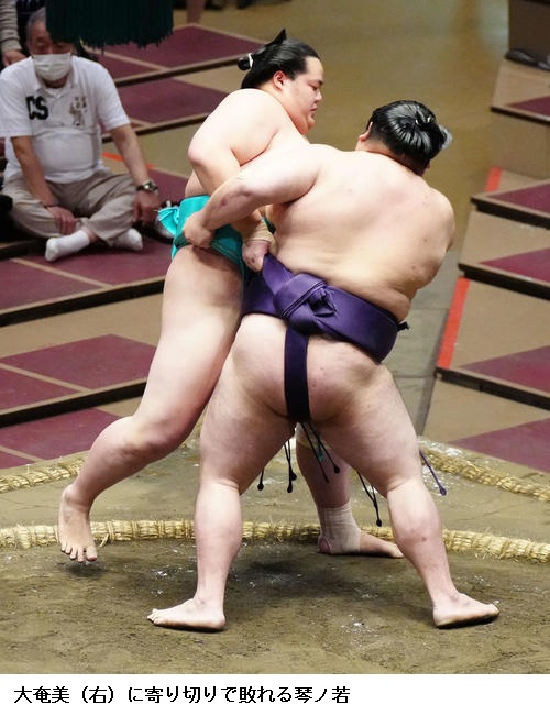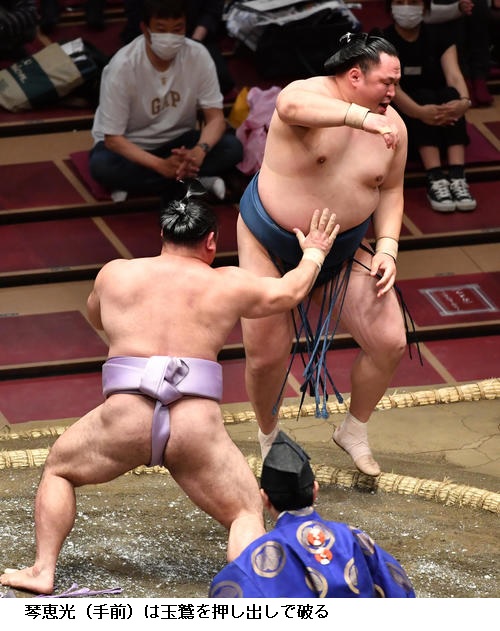 ▽琴ノ若に玉鷲は、琴ノ若が押し出し。
