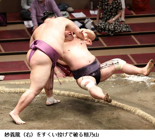 ▽関脇・隆の勝に妙義龍は、隆の勝が寄り切り。妙義龍は初日から4連敗です。
