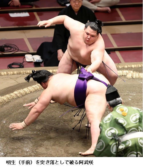 ▽大関 正代に阿武咲は正代が押し出しで勝ちました。 (NHK WEB NEWS 2021年5月19日 19時17分)