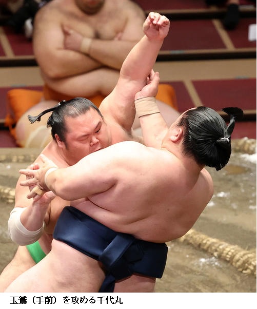 ○千代丸 自分の右四つになれたんで、落ち着いていけた感じです。自分の相撲で勝てているんで、調子はいい方と思う。