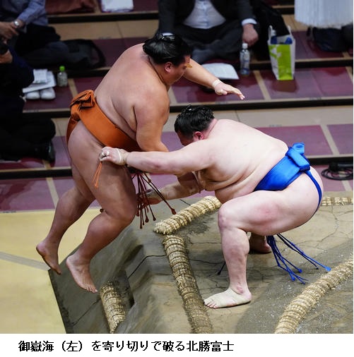 ▽小結 御嶽海に北勝富士は北勝富士が寄り切りで勝ちました。
