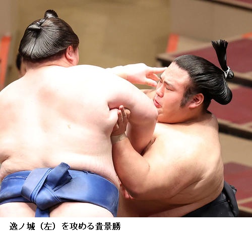 ▽大関 貴景勝に逸ノ城は貴景勝が押し出しで勝って2敗を守りました。