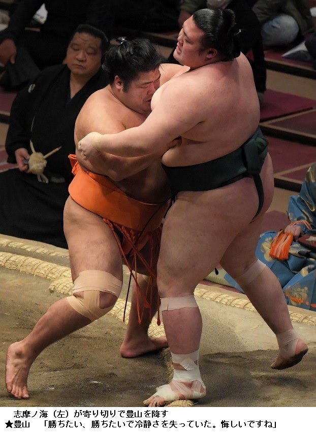 ▼豊山に志摩ノ海は志摩ノ海が寄り切り。