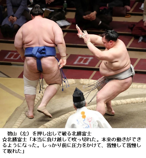 ▽碧山に北勝富士は、北勝富士が押し出し。