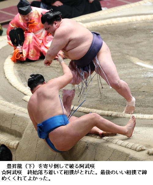 ▽豊昇龍に阿武咲は阿武咲が寄り倒し。