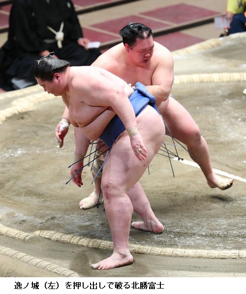 ▽北勝富士に逸ノ城は北勝富士が押し出し。
