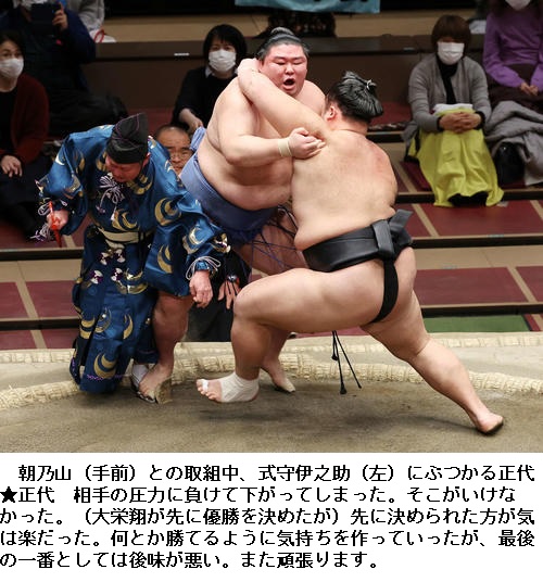 ▽大関 朝乃山に大関 正代の結びの一番は朝乃山が押し出しで勝ちました。 (NHK WEB NEWS 2021年1月24日 20時00分)