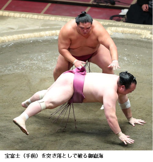 ▽宝富士に大栄翔は、宝富士が寄り切り。