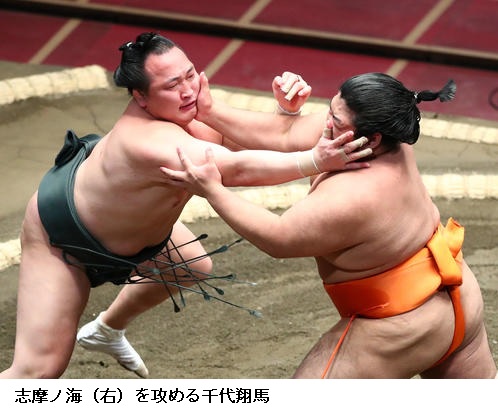 ▽千代翔馬に志摩ノ海は志摩ノ海が押し出し。