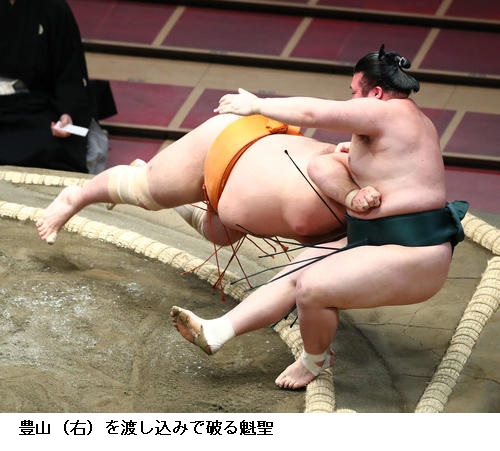 「ついに出たというか、何とも言えないですね」と照れ笑うが、鮮やかだった。後ろ向きの不利な体勢から、プロレスでいうバックドロップのように相手をなぎ倒した。「自然に体が動いた。危ないですけどね。自分でもびっくりした。これを稽古場でもできるわけないんで難しい」。