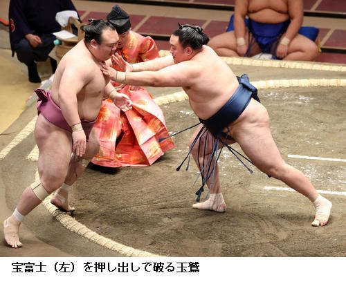 ▽宝富士に玉鷲は玉鷲が押し出し。