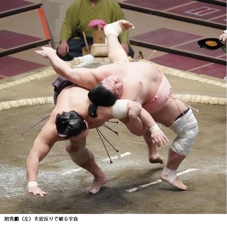 16場所ぶりに関取に復帰した東十両13枚目の宇良(28=木瀬)が、居反りの大技で旭秀鵬(友綱)を下し、3勝2敗と白星を先行させた。