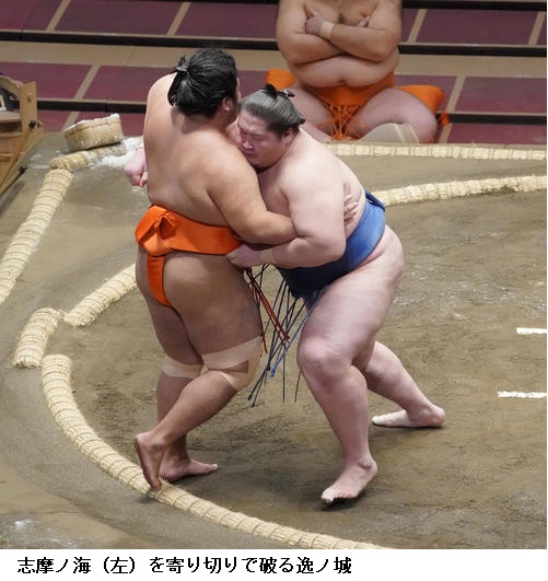 ▽逸ノ城に佐田の海は、佐田の海が寄り切り。