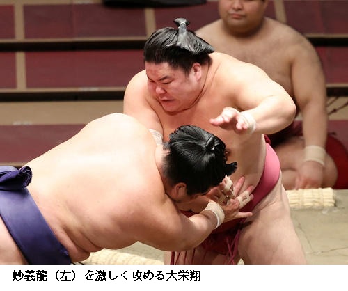 ▽大栄翔に隠岐の海は大栄翔が押し出し。