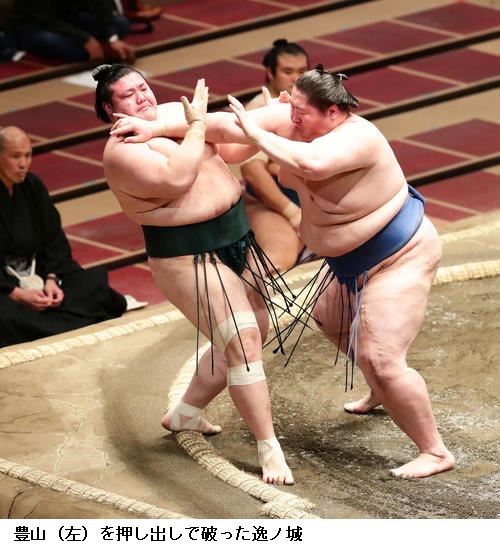 ▽豊山に逸ノ城は逸ノ城が押し出し。豊山は負け越しました。