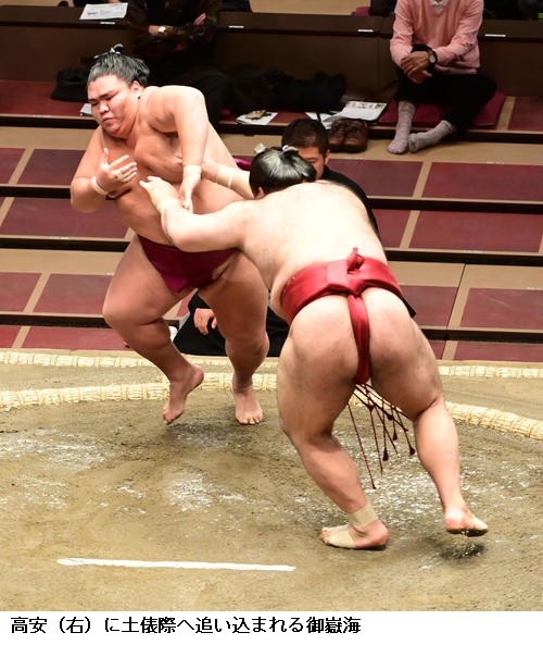 ▽御嶽海に高安は高安が押し出しで勝ちました。