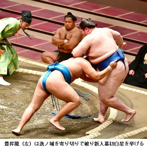 新入幕の豊昇龍は、物言いがつく際どい相撲で初黒星を喫し「体が落ち着きすぎて失敗した。考えて、集中して相撲を取っていきたい」と、ことば少なでした。