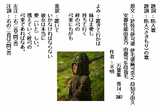 巻14-3567: 置きて行かば妹はま愛し持ちて行く梓の弓の弓束にもがも