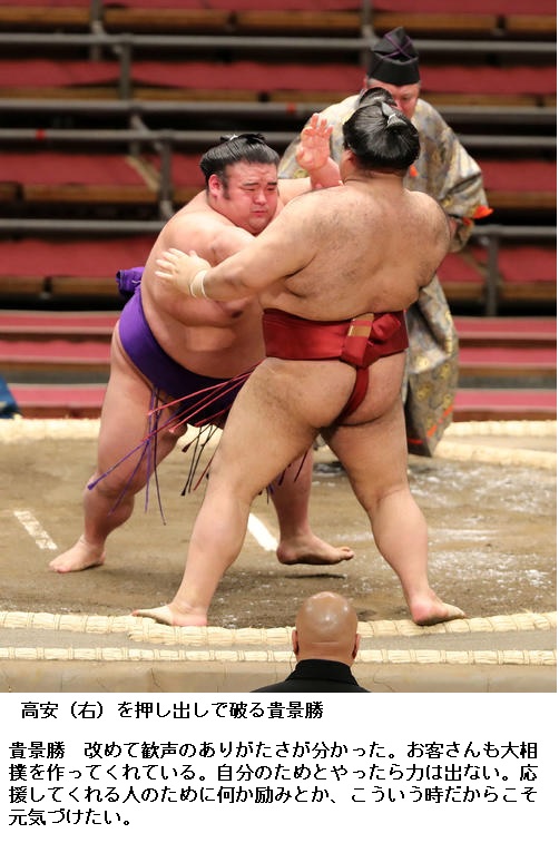 大関 貴景勝は、「初めての経験なので、少し難しい部分がある。改めて歓声のありがたさがわかる。テレビの前で応援してくれるかたがたくさんいるので頑張るだけだ」と話していました。