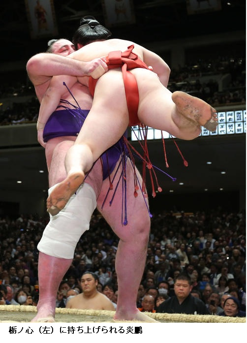 ▽炎鵬に栃ノ心は栃ノ心がつり出し。