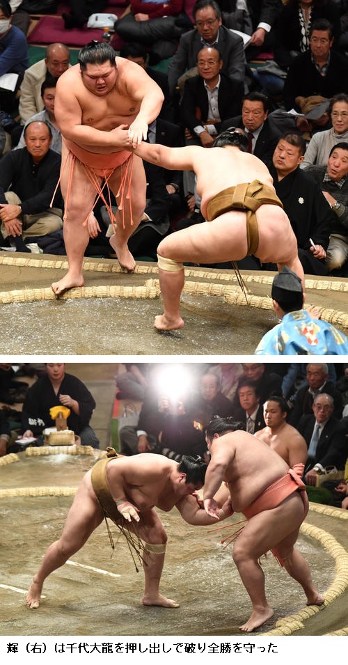 輝は9勝目を挙げ「下から下から前に前に出ようと思った。しっかり自分の取りたい相撲が取れているので、これを崩さずに最後までいきたい。踏み込みがよくて体重が前に乗っている。師匠からは、『しっかりと踏み込んでいったら大丈夫』と言われている」と冷静に振り返りました。