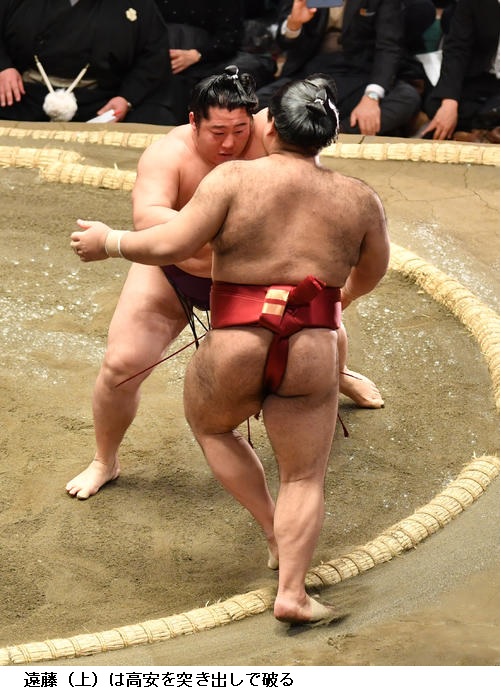 ▽遠藤に大関 豪栄道は、遠藤が突き落としで3連勝。一方、角番の豪栄道は3連敗です。