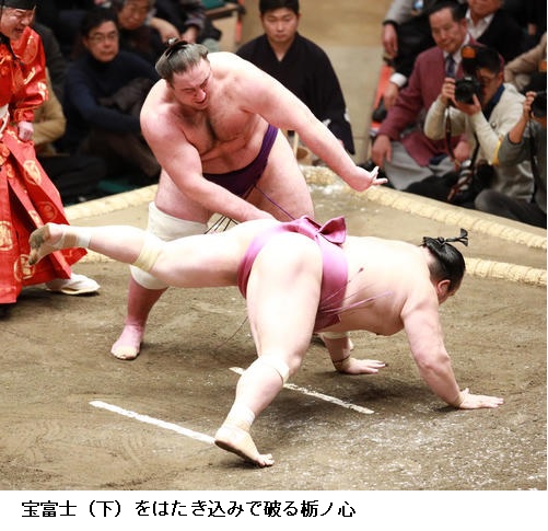 宝富士は「大関みたいに緊張する必要はないし、気楽に思い切り、負けてもいいと思ってやった。体は動いている」とうれしそうでした。 (NHK WEB NEWS 2020年1月21日 19時14分)