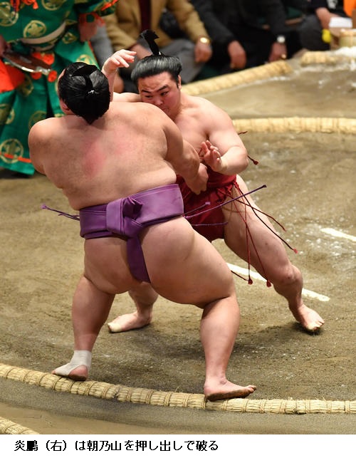 ▽朝乃山に炎鵬は炎鵬が押し出しで勝ちました。ともに6勝5敗となりました。