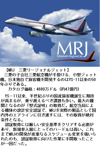 ①MRJ〈三菱リージョナル・ジェット機)はいつになったらアメリカの型式証明が取れるの?