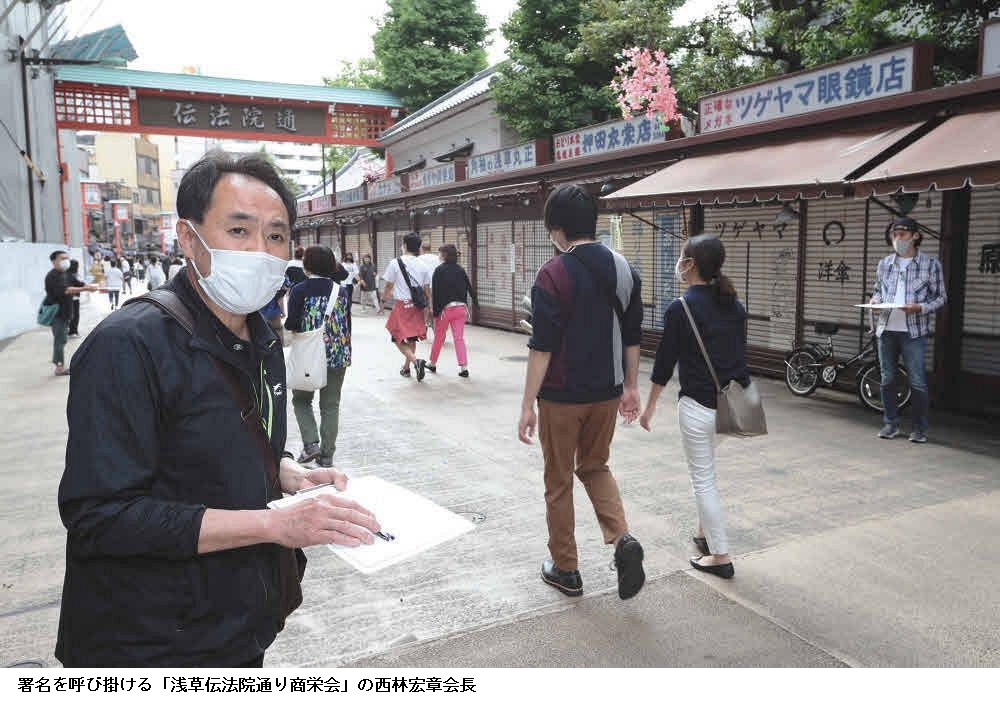店主たちは5月、営業継続への賛同を求め、週末の街頭署名活動を始めた。これまでに7000筆を集め、今後、区に提出する予定だ。西林会長は「商店街の一員として浅草の発展を支え、個人事業主としても所得税などを納めてきた。店がなくなれば生活の糧を失ってしまう」と訴えている。