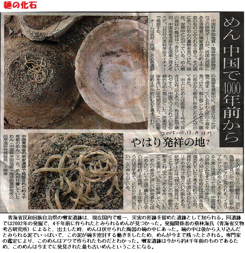 小麦はメソポタミア(今のイラクあたり)から栽培が始まったと言われていますが、中国にも栽培方法や小麦粉にする技術も伝わりました。青海省の4000年程前の遺跡からは麺の化石も発見されており、一説によれば、パスタの起源もシルクロードを通って、イタリアにもたらされたとか。シルクロードは、絹の道ばかりではなく、麺の道でもあったのです。