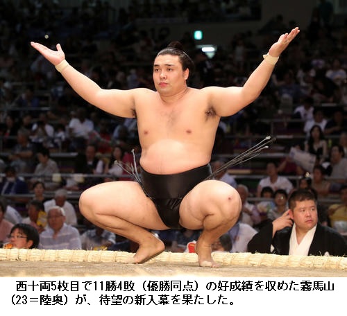 ▽新入幕 霧馬山は、陸奥部屋からは08年夏場所の白馬以来、モンゴル出身では26人目、外国出身では49人目の幕内力士に。