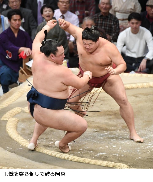 ▽阿炎に竜電は、阿炎が突き出しで5勝目。