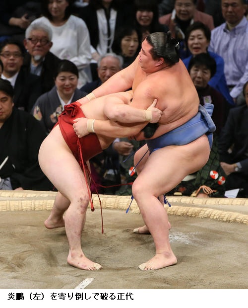 ▽正代に妙義龍は、妙義龍が寄り切り。正代は4敗目を喫しました。