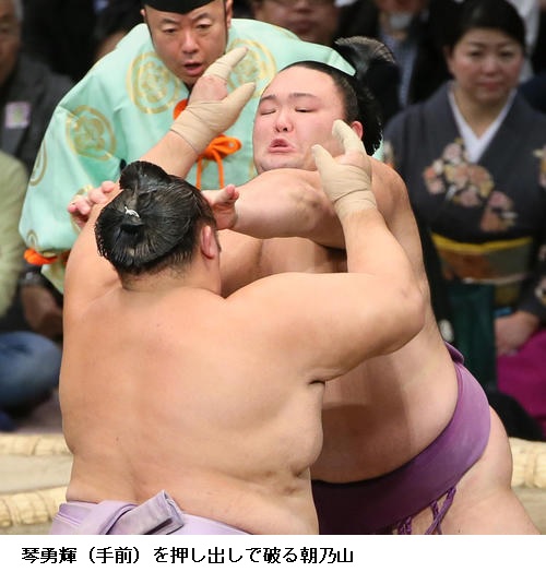 ▽松鳳山に輝は輝が押し出しで10勝目。
