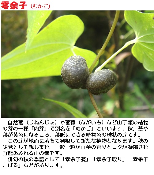 零余子は山芋(自然薯・じねんじょ)の実。茹でて塩、醤油などをつけて食べます。慈姑は茹でたり、焼いたりで、煮る場合は下茹でしてアクをとります。