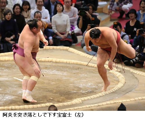 ▽阿炎に宝富士は宝富士が突き落としで勝ちました。