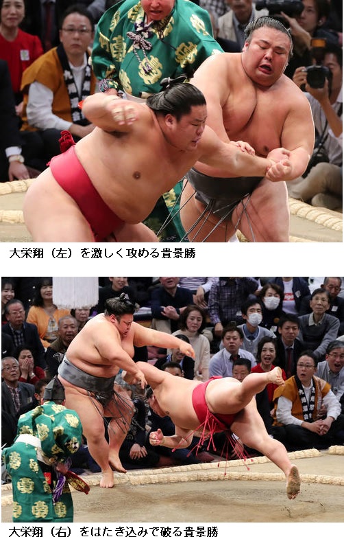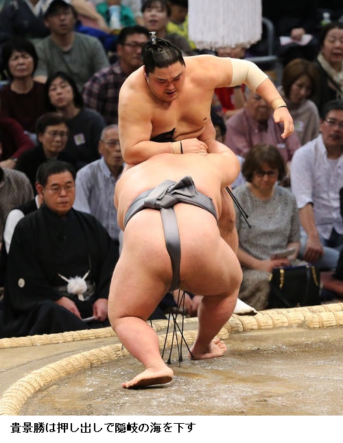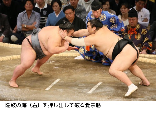 ▽隠岐の海に大栄翔は大栄翔が押し出しで勝ちました。