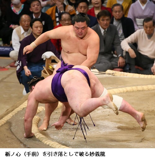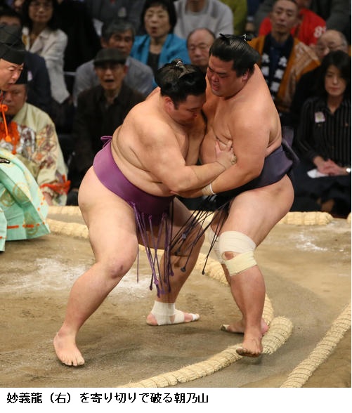 大関 高安を破った妙義龍は、「立ち合いで負けたがもろ差しになった。ねらってはいなかったが入った。大関に勝てていなかったので気持ちいいね」と淡々と話していました。